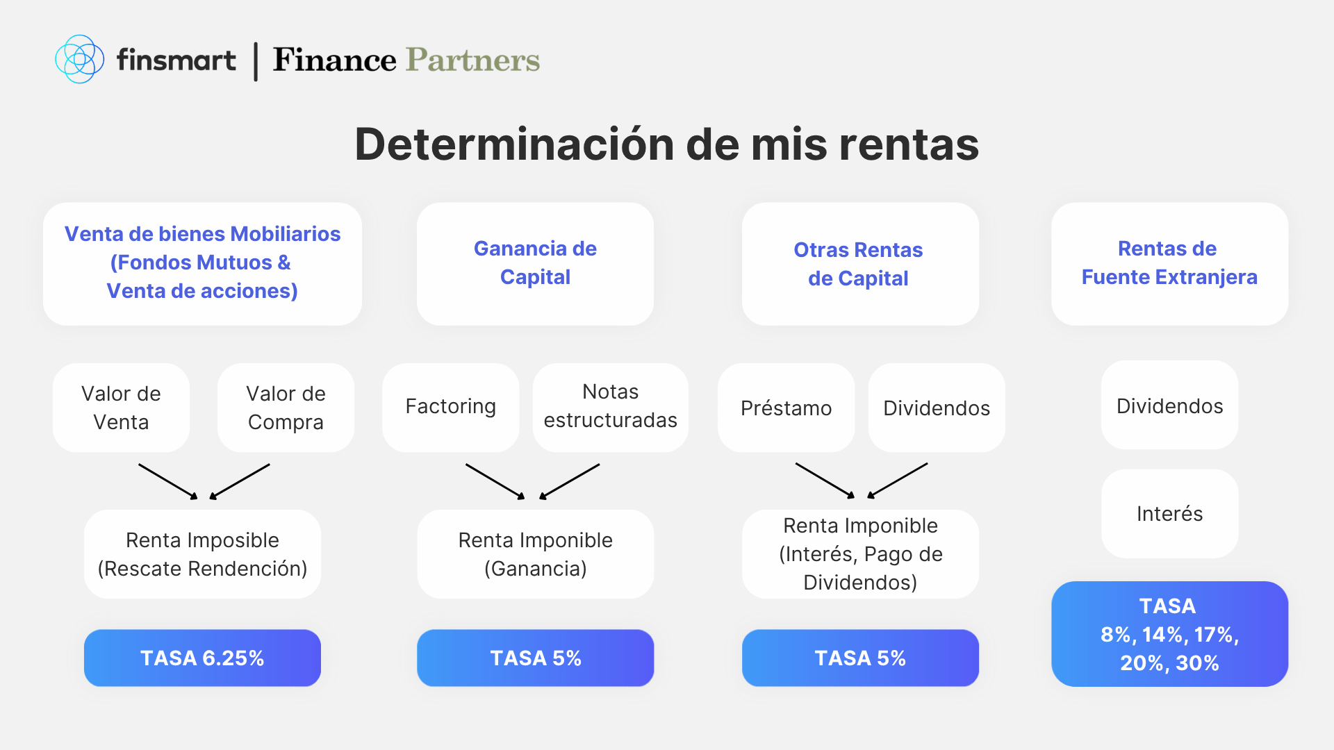 - Otras Rentas y Ganancias de Capital (Factoring, Notas Estructuradas, Préstamos y Dividendos): Instrumentos como el factoring, el cobro de intereses por préstamos o la distribución de dividendos están sujetos, por lo general, a una tasa efectiva del 5%.