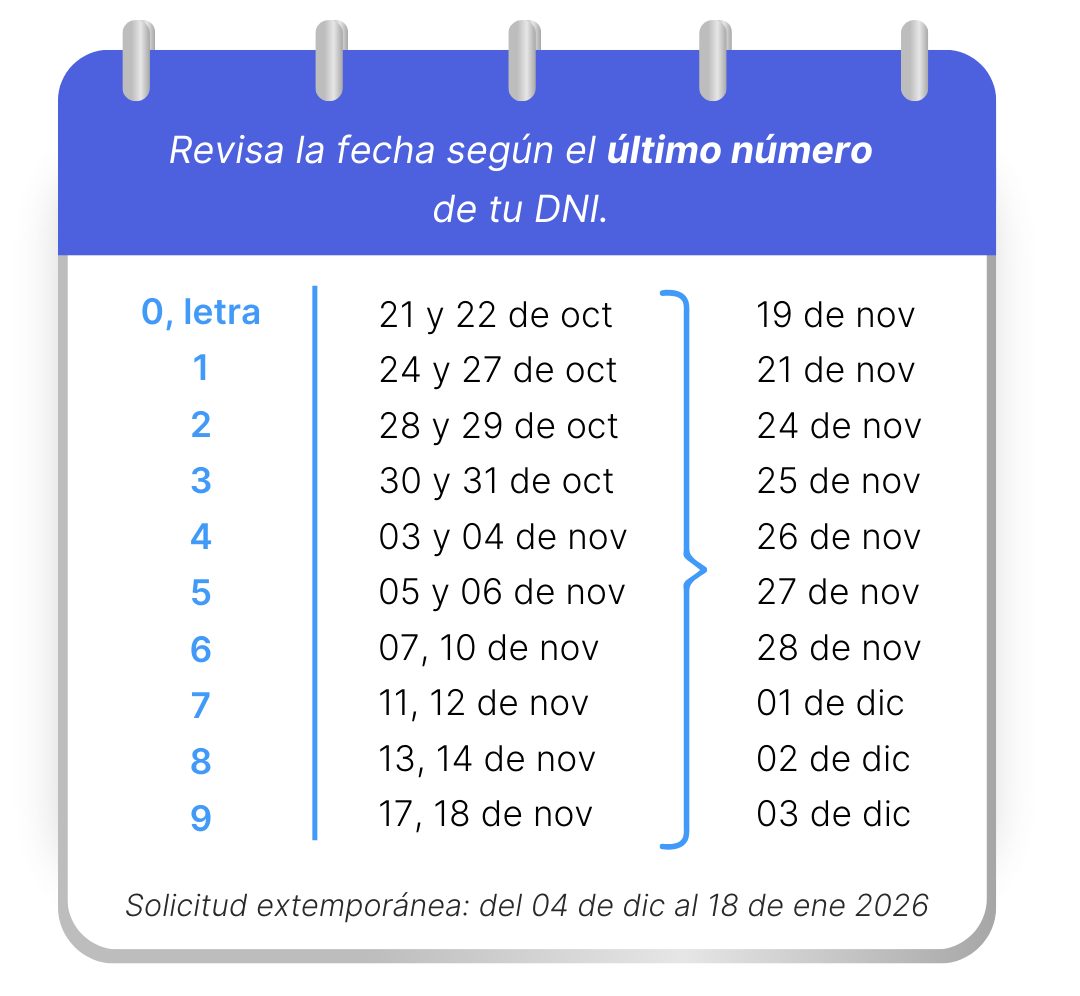 La fecha de solicitud depende del último dígito de tu DNI. Cada AFP publica un cronograma oficial indicando los días exactos para registrar tu solicitud.